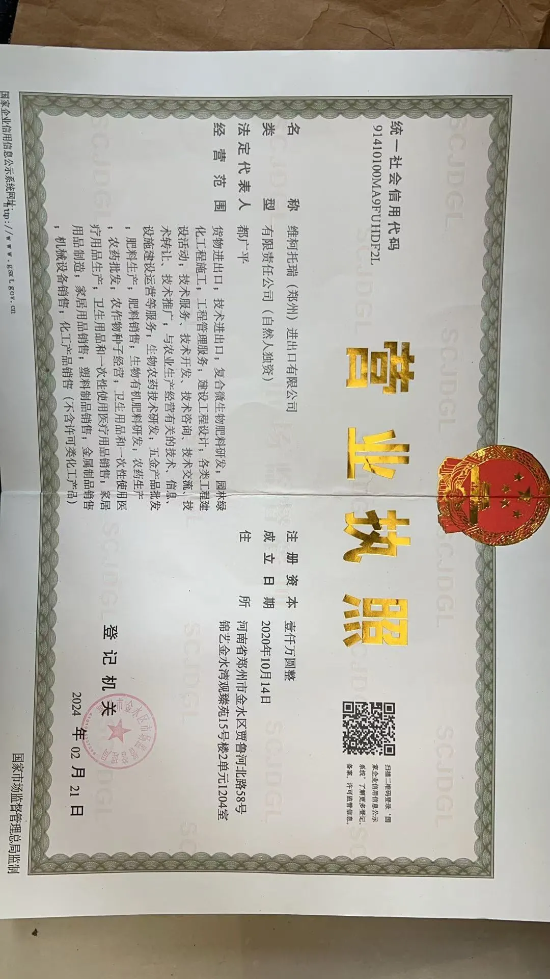 一、维柯托瑞(郑州)进出口有限公司二维码服务